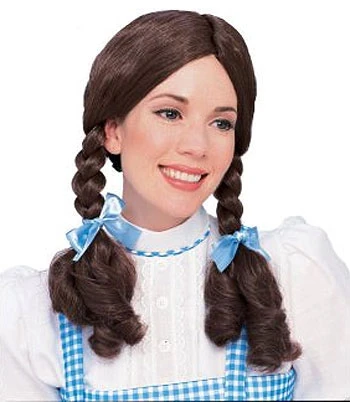 Dorothy Wig w/Blue HairbowsIf you want a complete look at an unbeatable price, then this is the Dorothy wig for you! This synthetic wig has soft curls and braids just like Dorothy from the Wizard of Oz. An interior netting makes this wig comfortable to wear all night long. Add this wig to any of our adult Dorothy costumes for a finished look.