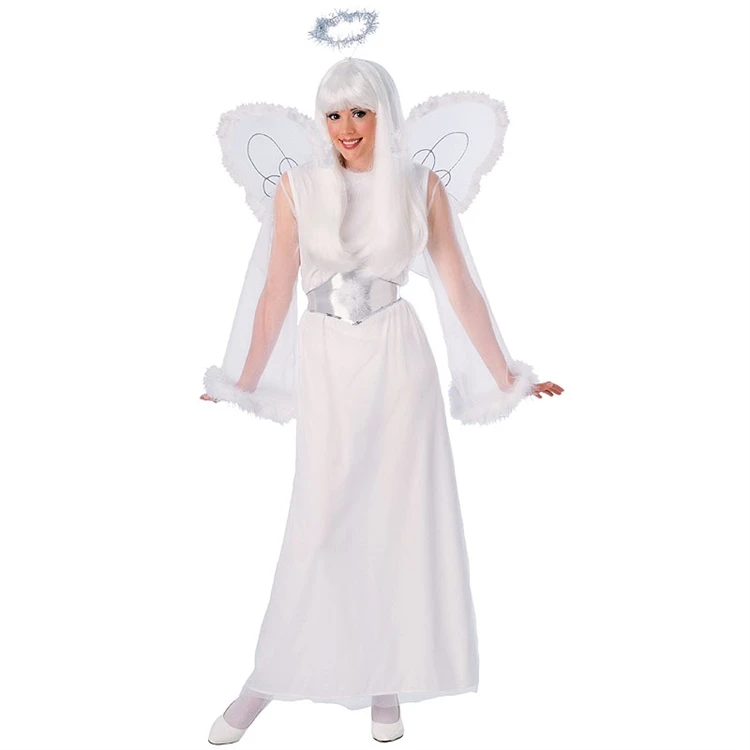 Sexy, sassy, and feathered! You are sure to look like a vision in white in this adult angel costume. Part of the feathered fashions collection, this Adult Snow Angel Costume includes a halo headband, wings, an under-dress, a feather trimmed over-dress, and a belt. This is a perfect outfit for your next Christmas event or church play.