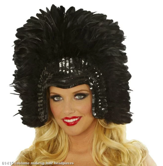 She’s got dance and entertainment skills with a sexy smile to match. Features black sequin headpiece with black feathers. Now this piece of eye candy is ready to drop some jaws.