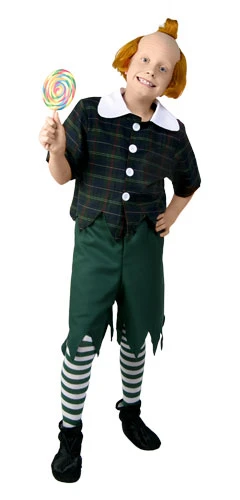 Plaid Shirt w/White CollarStriped SocksShorts w/DrawstringThis Munchkin costume is a great choice for Halloween or a stage production! It includes a plaid shirt that buttons up the front and is made from polyester. It is accented with a white collar and has short sleeves. The matching green shorts have a jagged bottom and a drawstring waist for a secure fit. The costume also includes a pair of green and white striped socks. Slip on one of our Munchkin wigs for a funny and complete look!