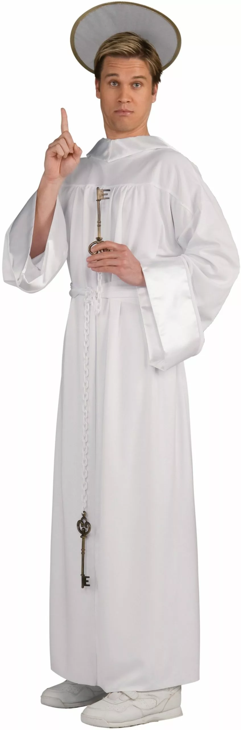 You’ll be able to pass judgment on all of your sinful friends while donning the Gate Keeper Costume which includes: A floor length white robe, halo with gleaming gold trim and a belt with attached copper colored key.