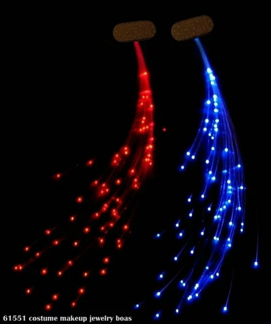 Glowbys are fiber optic hair accessories that are great for parties or any night time event. Hide the thin barrette under your hair so that only the lights are visible, or wear it like a normal barrette. Package Includes one (1) Flashing Blue/Red fiber optic barrette (hair accessory).