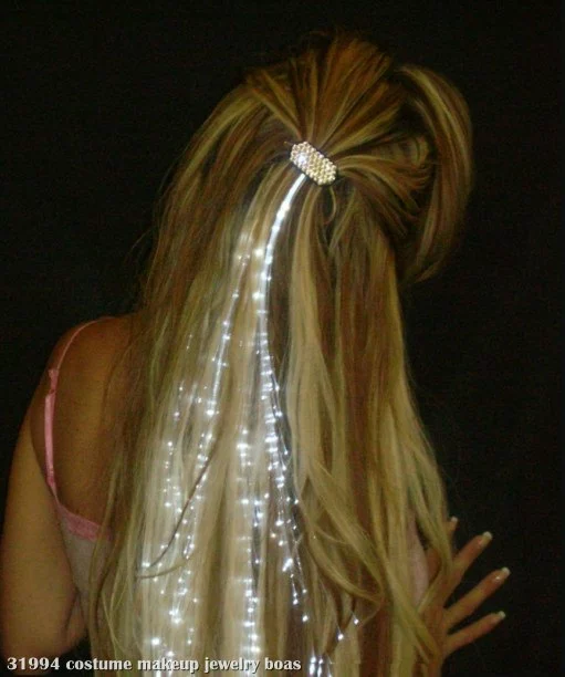 Glowbys are fiber optic hair accessories that are great for parties or any night time event. Hide the thin barrette under your hair so that only the lights are visible, or wear it like a normal barrette. Package Includes one white fiber optic barrette (hair accessory).