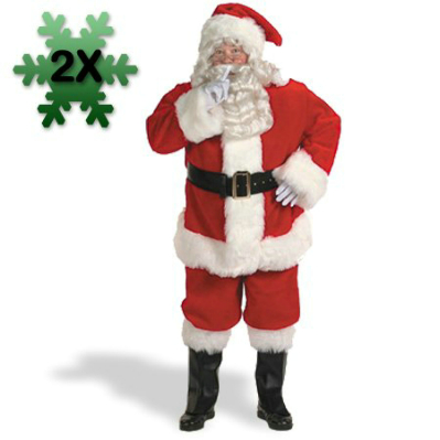 From his rosy red cheeks to his big belly that shakes like a bowl of jelly – Santa Claus brings a twinkle to the eye of kids at any age. Surround yourself in the plushest of pile, completely lined in satin. This professional grade Santa Suit has all the necessary pieces for a job well done-the zippered coat; pants with on-seam side pockets; the signature hat with a generously-sized pom pom; naugahyde boot tops with long haired white plush trim; a wide belt with eyelets; gilded buckle and prong; and white nylon stretch gloves. So the next time you hear the joyous shriek of a child in anticipation for the arrival of their favorite ol’ elf, remember this: The knees get tired, but the happiness you’ll be bringing to the little ones guarantees Merry Christmas memories for many years to come!