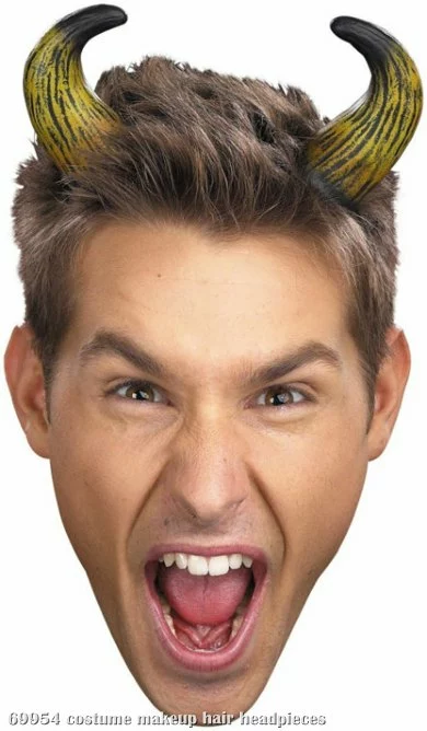 Top off your demonic or mythological look with these short bent horns that fade from mustard to black.
