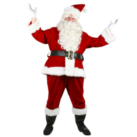 From his rosy red cheeks to his big belly that shakes like a bowl of jelly – Santa Claus brings a twinkle to the eye of kids at any age. Drape yourself in the plushest velveteen, completely lined in lush satin. This professional grade Santa Suit has all the necessary pieces for a job well done-the zippered coat with soft faux fur trim; pants with an elastic waistband; the signature hat with an oversized pom pom; naugahyde boot tops with long haired white plush trim; and a wide belt with eyelets and attached buckle. So the next time you hear the joyous shriek of a child in anticipation for the arrival of their favorite ol’ elf, remember this: The knees get tired, but the happiness you’ll be bringing to the little ones guarantees happy Christmas memories for many years to come!